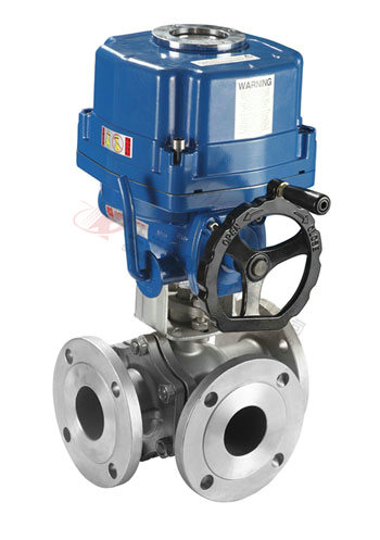 電動三通球閥分L型和T型,介質(zhì)流通方向見下圖。L型電動三通球閥適用于介質(zhì)流向的切換,能使相互垂直的兩個通道連通:T型電動三通球閥適用于介質(zhì)的分流、合流或流向 切換,T型孔道可以使三個通道互相連通或使其中兩個通道連通,電動三通球閥一般采用三個閥座結(jié)構(gòu),亦可根據(jù)用戶要求采用四閥座結(jié)構(gòu)。