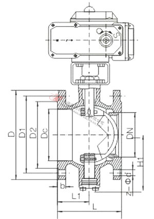 VQ947(H/FY)法蘭式電動V型球閥外形參數及連接尺寸